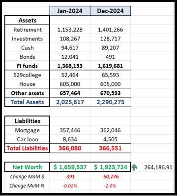 We had an increase of $264k last year and ended with $1.9m in Net Worth.