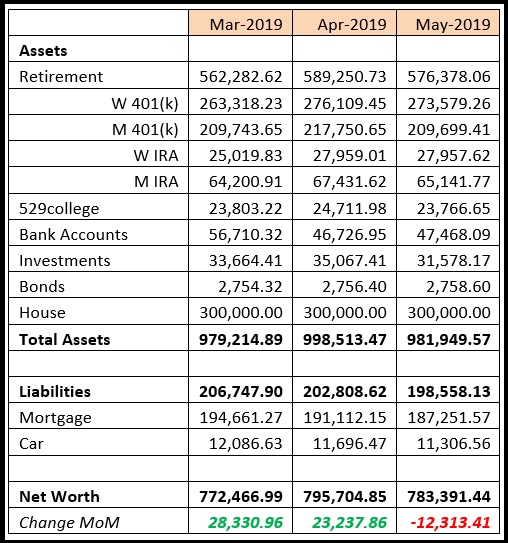 Reduced debt by $4.2K by mainly paying extra on the mortgage principal.