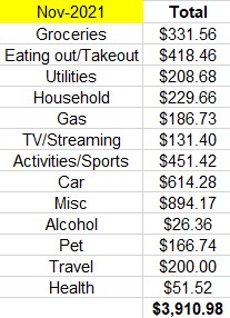 Spending for November is right about the “average”. It seems that $3.5k to $4k is our sweet spot.