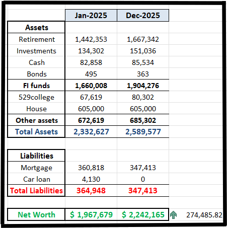 - IRAs – $14k (combined for both) – hit goal of max limit; as we did in 2024