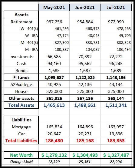 We started off the year with a loss of $55k which brings our NW down to the level from last October. I’m not complaining, just bench marking.