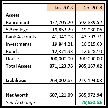 We had an increase of $264k last year and ended with $1.9m in Net Worth.